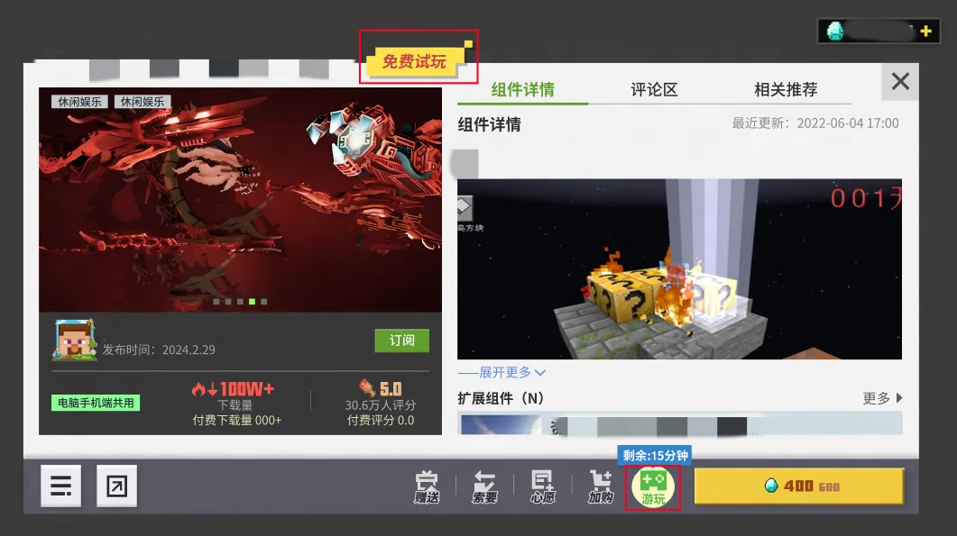 对于上传了试玩版本的组件