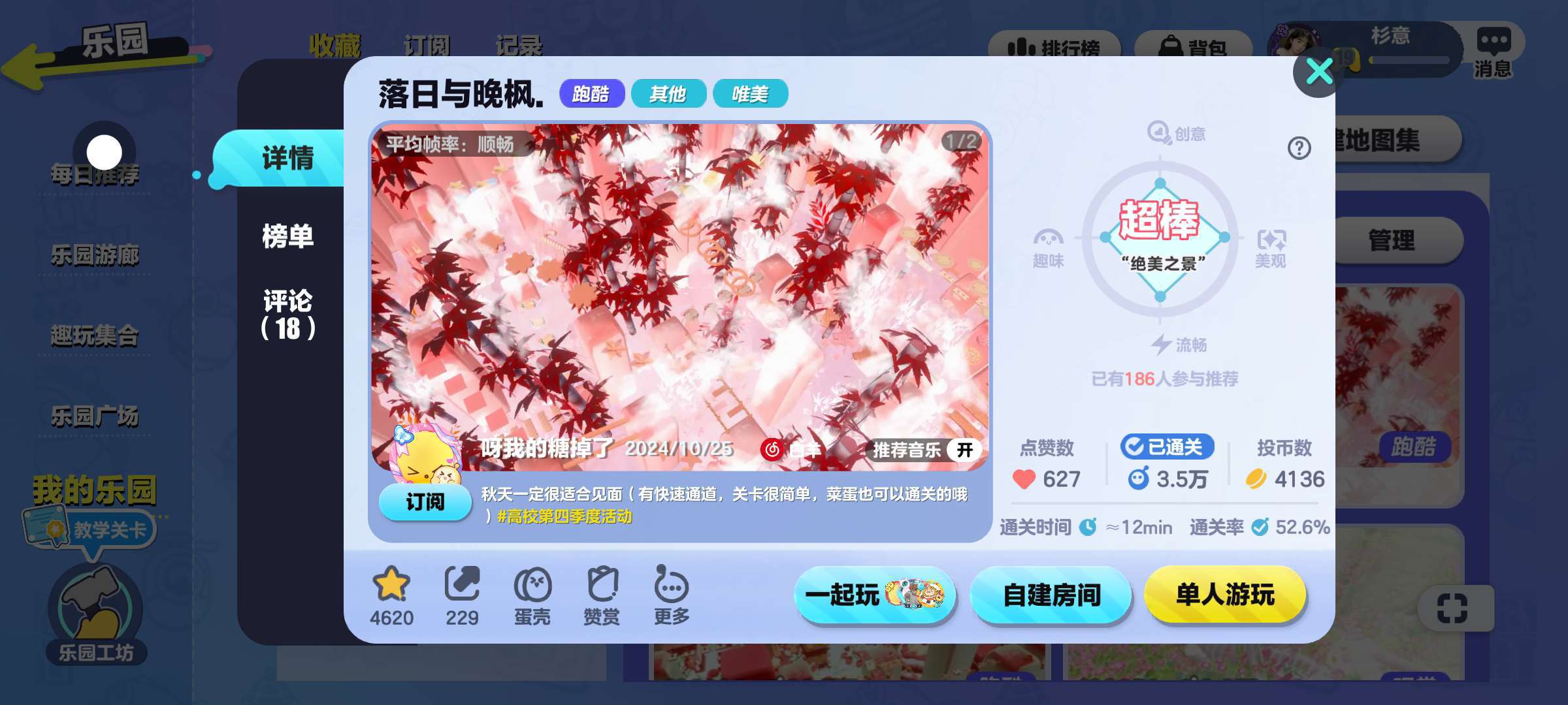 “最是秋风管闲事,红他枫叶白人头”这张就是全景啦🦋关卡都超级简单,跳一跳就可以过,起点有速通,终点有集体存档✨