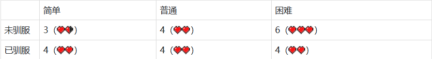 驯服后的狼会用尾巴抬起的幅度表示自身血量(生命提升增加的血量上限有效甚至可以逆时针转一整圈),如果驯服的狼受伤,它的尾巴会下垂,可用肉恢复生命。
