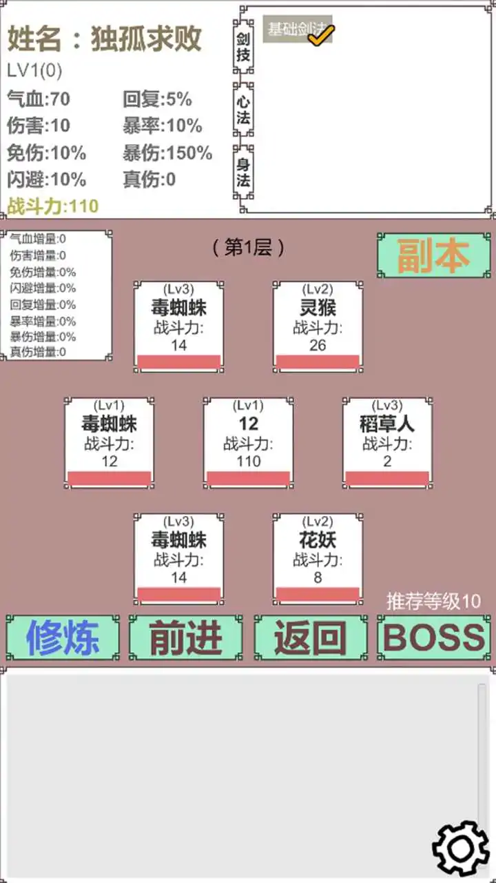 有一个升级的快速方法:基础剑诀叠伤害(蝶豆可以秒杀此地的所有怪物)换成星火燎原。这样很快就能升高很高的等级(个人建议,有个加闪避的