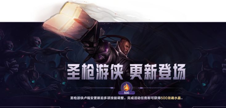 圣枪游侠 卢锡安更新后多项技能调整,即日起,截止至11月20日,召唤师完成任务即可获得龙魂水晶*500奖励~