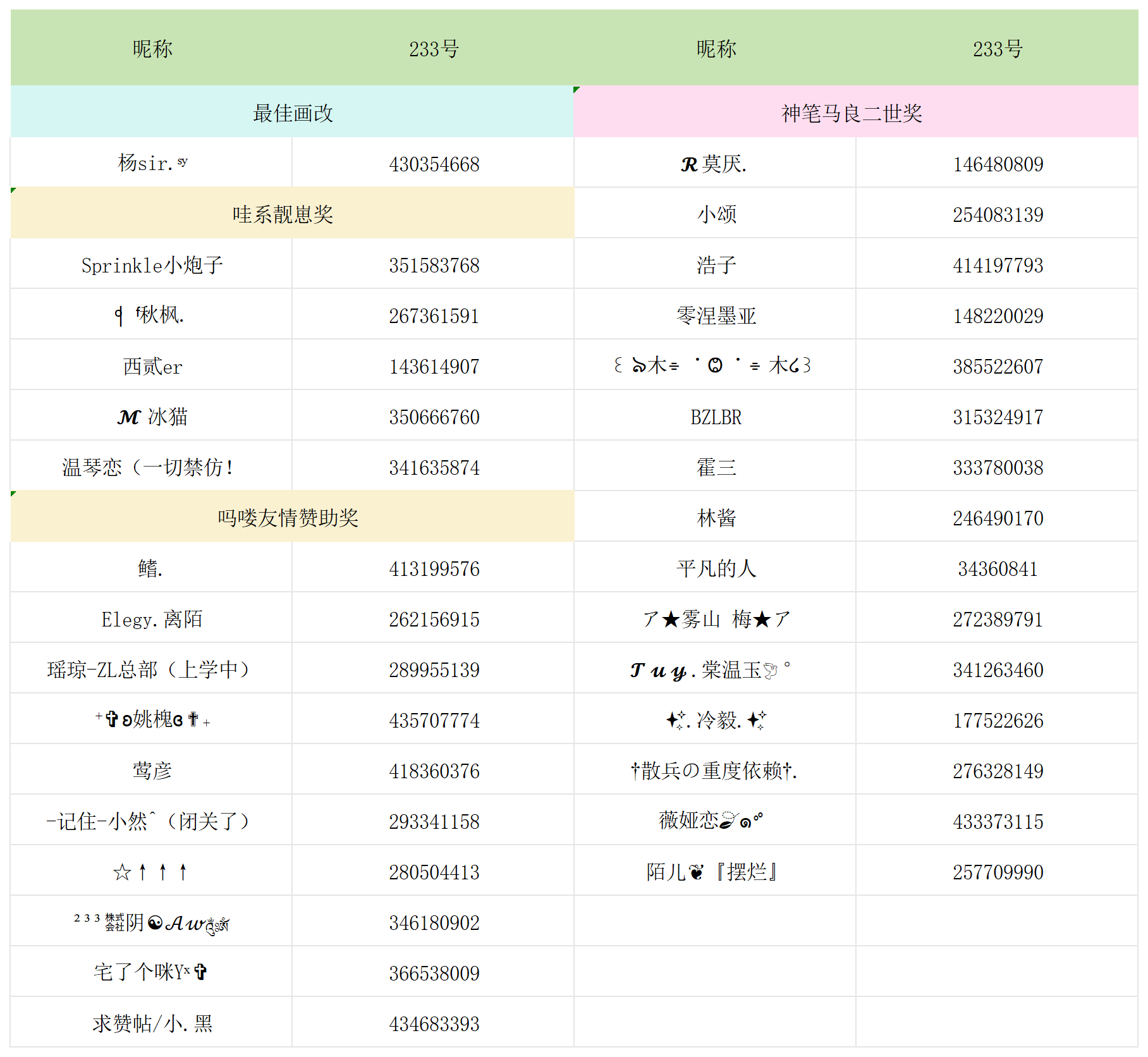 恭喜以下宝子在此次画崽活动中获奖!!!