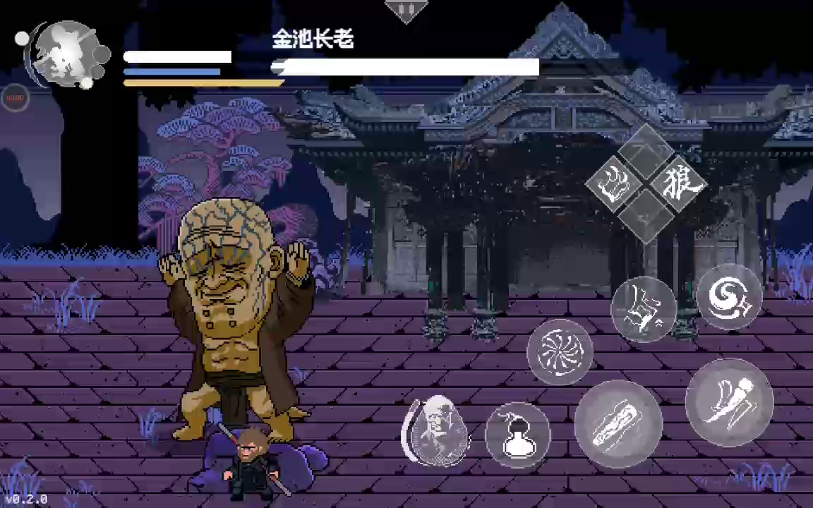 《黑神话像素版》已更新第二章节,第二章节0.2版本与0.1版本存档不互通,更新至0.2新版本后,进入游戏点击【新的轮回】即可游玩第二章节全新内容。 第二章(0.2版本)更新内容 1、新增第二章节:风起黄昏; 2、新增boss:广智、沙国王、沙二郎、浪里个波、波里个浪、虎先锋等; 3、新增隐身、变身、分身等技能法术; 4、新增神力系统和蓄力条; 5、新增精魄系统; ----------- 温馨提示: 本游戏是由B站UP主:火山哥哥开发制作的同人游戏,233乐园对该游戏进行收录供大家游玩体验。 下载使用产生的版权问题请自行负责,233乐园不承担任何法律责任,如果您喜欢该游戏请支持官方正版。233乐园不拥有任何权利,其版权归该游戏的合法拥有者。如果该游戏侵犯了您的版权,请将相关版权证明或授权证明发送到邮箱,我们将在24小时内删除该游戏。 《黑神话悟空》像素版来袭啦!火山哥哥化身像素大师,将经典场景还原得淋漓尽致,十个不同地图场景让你眼花缭乱。孙悟空的移动、跳跃、战斗系统全部上线,连蓄力劈棍、棍花闪避都超级流畅,简直是像素版战斗艺术!小狼妖、大头、金池长老等BOSS悉数登场,每个都有独特招式,让你体验不一样的战斗乐趣!更有喝酒功能、定身术、存档系统等丰富玩法,让游戏不再单调。