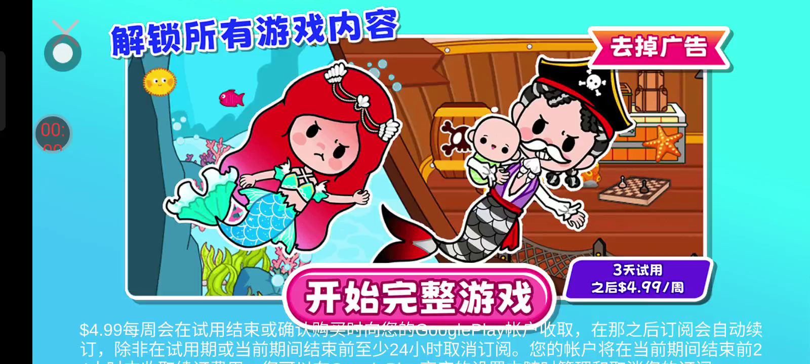 在公主生命城的海底奇观中,为孩子们/蹒跚学步的孩子们踏上一段激动人心的旅程!探索波波美人鱼小镇模拟器的秘密,在那里你会遇到新朋友,比如小美人鱼公主、海豚波波王子、水母宠物女孩、章鱼女王、锦鱼娃娃公主,甚至还有猫或小马。当你深入这个儿童/学步儿童的神奇领域时,可以从一系列令人惊叹的服装中进行选择。 特征:自由探索:潜入所有秘密。就像有可爱的猫和马的王宫,青春之泉,巫婆的房子,沙龙房间,和海底餐厅。与朋友一起冒险:在不同的地点加入你最喜欢的角色或宠物。与女孩在宫殿里跳舞,发现小动物/宠物,开一家护理沙龙或进行一次激动人心的寻宝活动!创造你的故事:创造新的故事,在海浪下塑造你自己的童话世界。 互动性:角色表情:给你的角色各种各样的表情,让他们移动和跳舞,只有你的想象力才能限制无尽的可能性。丰富的定制:从数百张脸、可爱的衣服、化妆品和小配件中进行选择,打造你自己独特的宝宝。照顾好你的角色!在这个儿童/学步儿童模拟游戏中,探索12个场景和500多个互动项目,如护理沙龙工具、马、猫、独角兽、小马和玩偶!故事创作:与每一件物品互动,寻找独角兽的秘密,创造人物故事,表达你的想法。