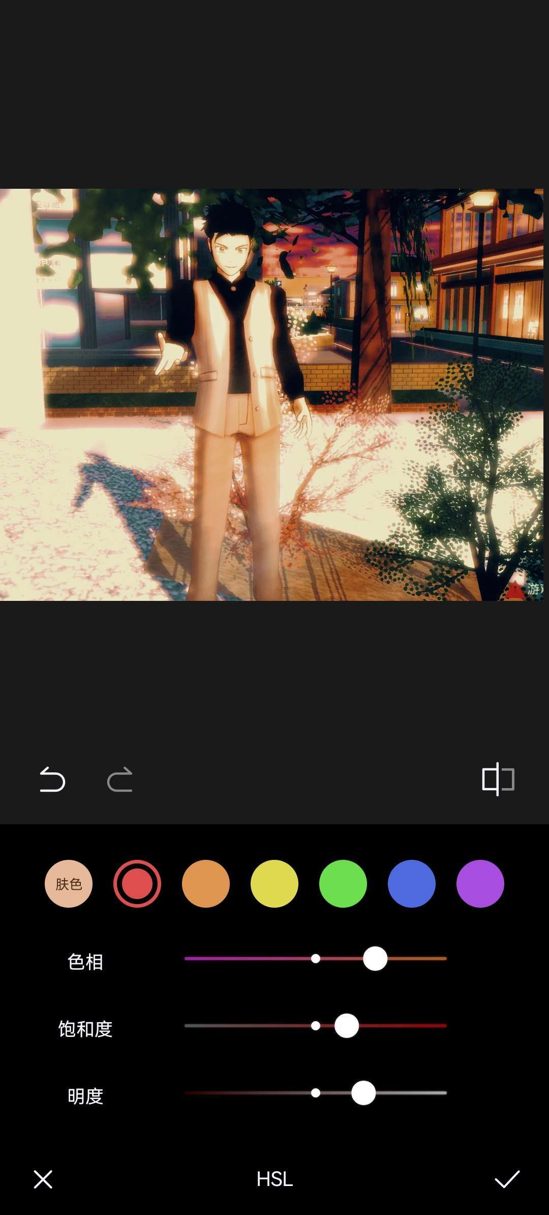 色相46,饱和度24,阴影2,明度37