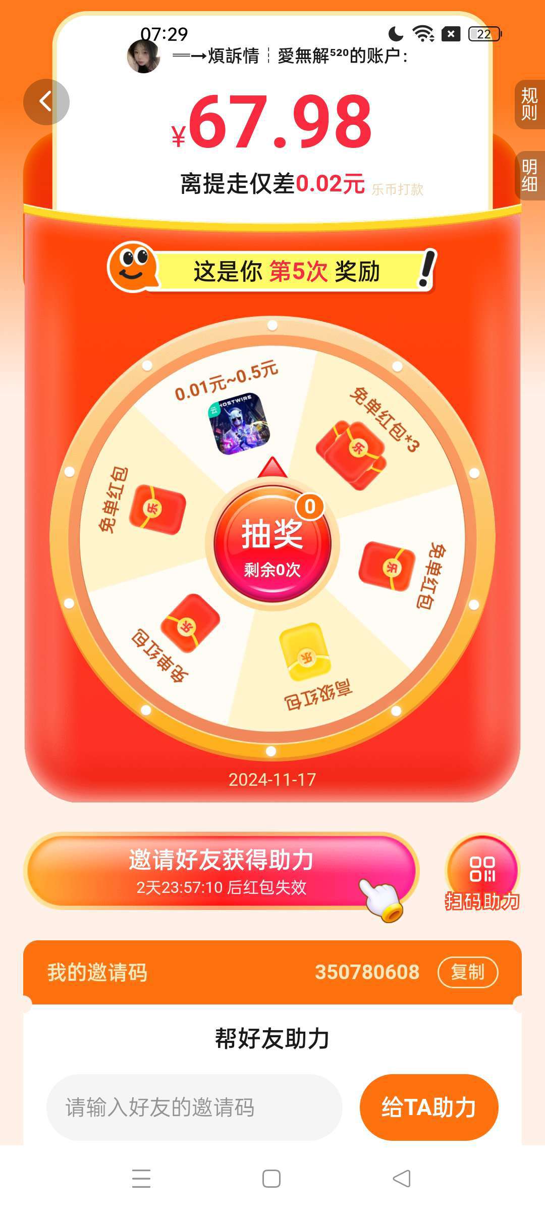 帮我助一下力吧。输一下邀请码就行