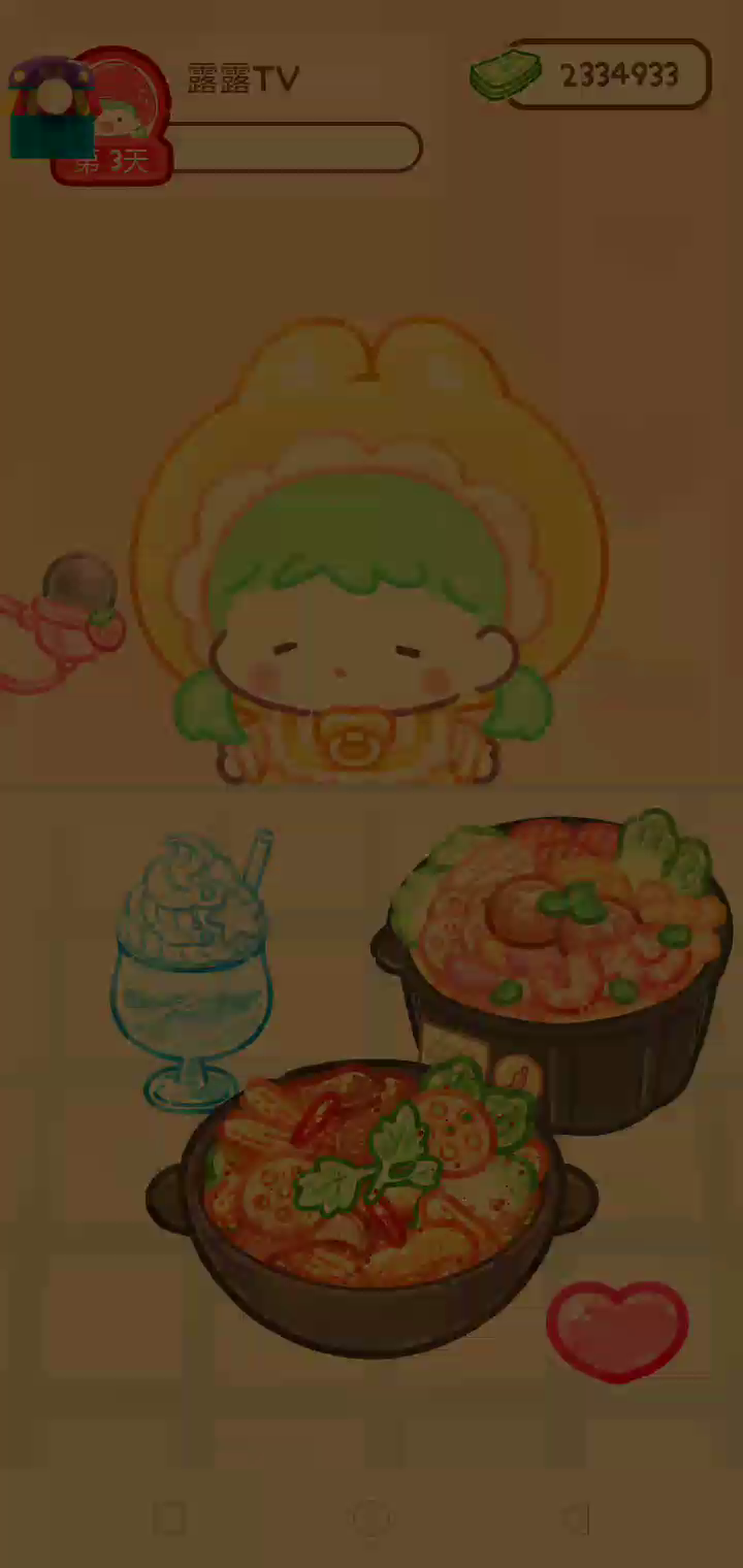 更新宠物!!! 「你进行草莓糖葫芦吃播的话,我就赞助100元。」 「脆口的声音太迷人了(°θ°)」 由于客人都被最近新开的许多糖葫芦店家抢走,曾经号称糖葫芦达人的父母因此卧病在床。 继承父母店面的主角露露开始糖葫芦吃播来宣传店面。 直到成为真正的糖葫芦达人那一天! 「今天我也要开始糖葫芦直播罗!( •o• )」 [串材料] 只有新鲜的水果的话,很难以一名吃播实况主存活下来。还要有松饼、地球软糖、青阳辣椒!利用奇特的材料制作糖葫芦吧。 [裹糖衣] 将材料串满竹签的话,就放进锅子搅动吧。唯有利用达人的秘法,才能裹出又薄又脆的糖衣。 [即时吃播] 咔哒咔哒!今天的吃播也大成功。热烈的聊天内容看起来反应也不错。看来得利用完成观众任务得到的赞助金来买新材料了! 来,准备好了吧?现在就马上挑战成为糖葫芦达人吧!