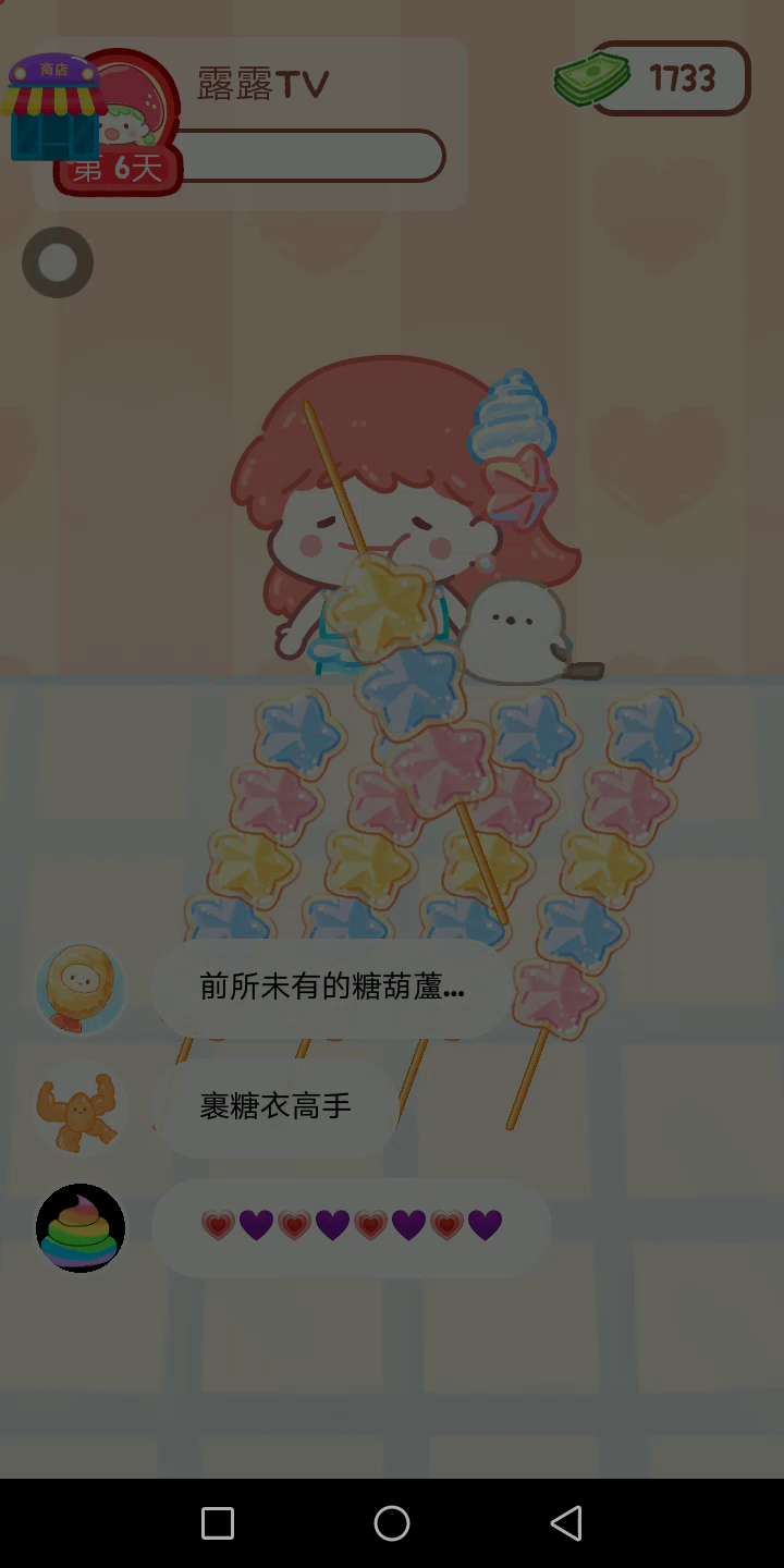 更新宠物!!! 「你进行草莓糖葫芦吃播的话,我就赞助100元。」 「脆口的声音太迷人了(°θ°)」 由于客人都被最近新开的许多糖葫芦店家抢走,曾经号称糖葫芦达人的父母因此卧病在床。 继承父母店面的主角露露开始糖葫芦吃播来宣传店面。 直到成为真正的糖葫芦达人那一天! 「今天我也要开始糖葫芦直播罗!( •o• )」 [串材料] 只有新鲜的水果的话,很难以一名吃播实况主存活下来。还要有松饼、地球软糖、青阳辣椒!利用奇特的材料制作糖葫芦吧。 [裹糖衣] 将材料串满竹签的话,就放进锅子搅动吧。唯有利用达人的秘法,才能裹出又薄又脆的糖衣。 [即时吃播] 咔哒咔哒!今天的吃播也大成功。热烈的聊天内容看起来反应也不错。看来得利用完成观众任务得到的赞助金来买新材料了! 来,准备好了吧?现在就马上挑战成为糖葫芦达人吧!