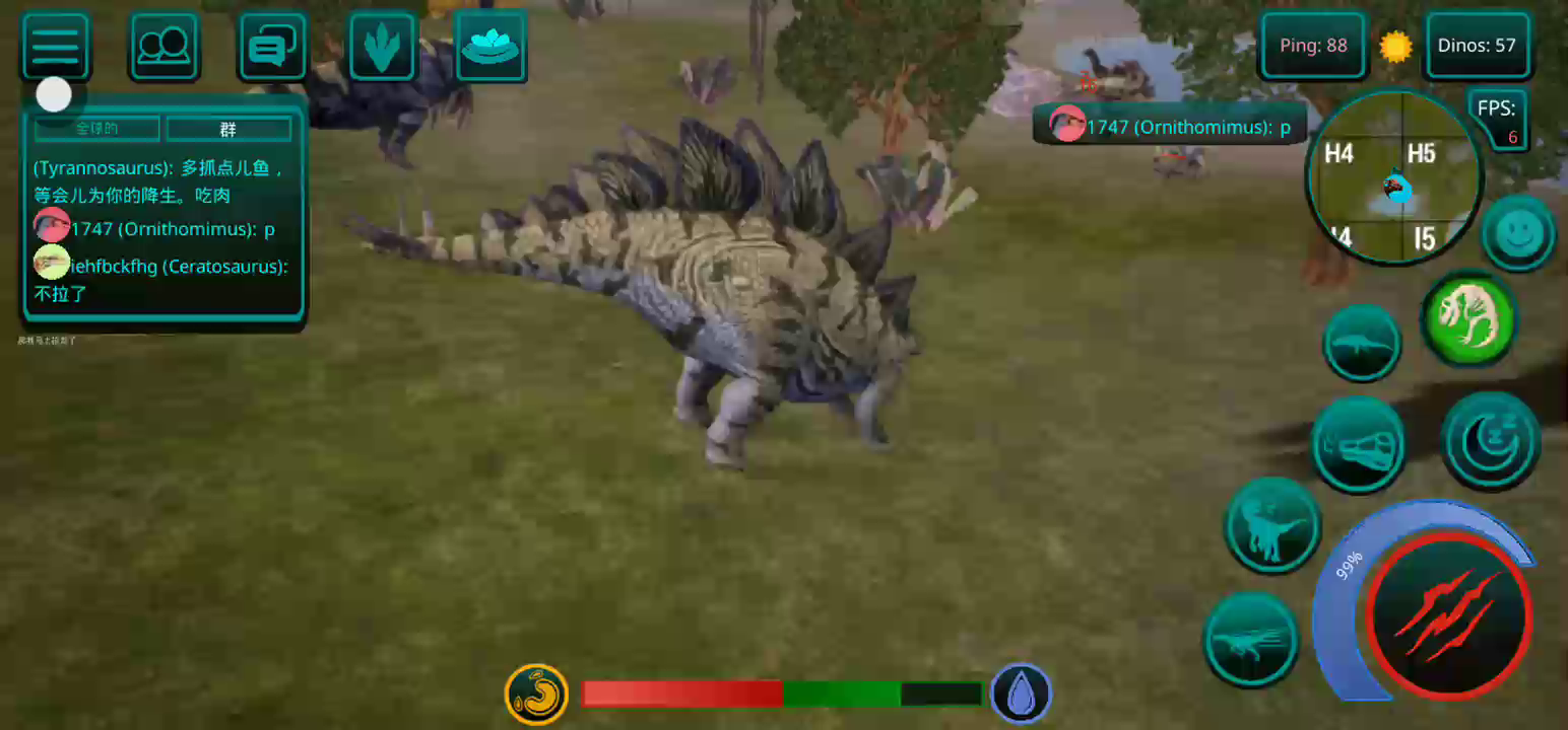 【更新:修复错误,提高稳定性】 恐龙岛是一款以侏罗纪世界为背景的逼真在线恐龙模拟器。 享受各种恐龙、逼真的图形和岛屿大地图。 选择你的恐龙并开始生存, 与您的朋友以及世界各地的玩家一起玩。 游戏中呈现了所有流行的恐龙,例如,从霸王龙、棘龙等食肉动物开始,到三角龙、甲龙等食草动物,游戏中有超过 23 种恐龙,包括飞行和游泳物种,以及所有恐龙。 如何玩诅咒岛 肉食性恐龙在线模拟器 - 恐龙生存和狩猎的游戏特色: 1.成长系统! 恐龙不会立即显得很大,需要照顾。 你需要培养他。你需要生存、寻找食物和饮料,并避免来自其他肉食恐龙(例如巨龙、重爪龙或暴龙)的潜在威胁。 2. 首先,玩家需要选择一种恐龙。 请记住 - 这是您个人的恐龙! 在恐龙游戏中,不仅有肉食性恐龙和草食性恐龙,还有会飞的恐龙,例如翼手龙,玩家可以与自己物种的食肉动物联合成群,以抵抗其他物种,最重要的是,生存! 3.食物提取,如果恐龙是掠食者,那么你需要杀死其他玩家的恐龙才能得到自己的食物,如果你是草食动物,那么食物就更容易了,你需要特殊的蕨类植物,你可以得到足够的他们! 地图上任意湖泊、水库都可以饮用。 4.文字聊天和好友系统。 您可以与世界各地的朋友和玩家聊天、制定策略、缔造和平等等。 并且还可以将玩家添加为好友,并加入到游戏的骨架中