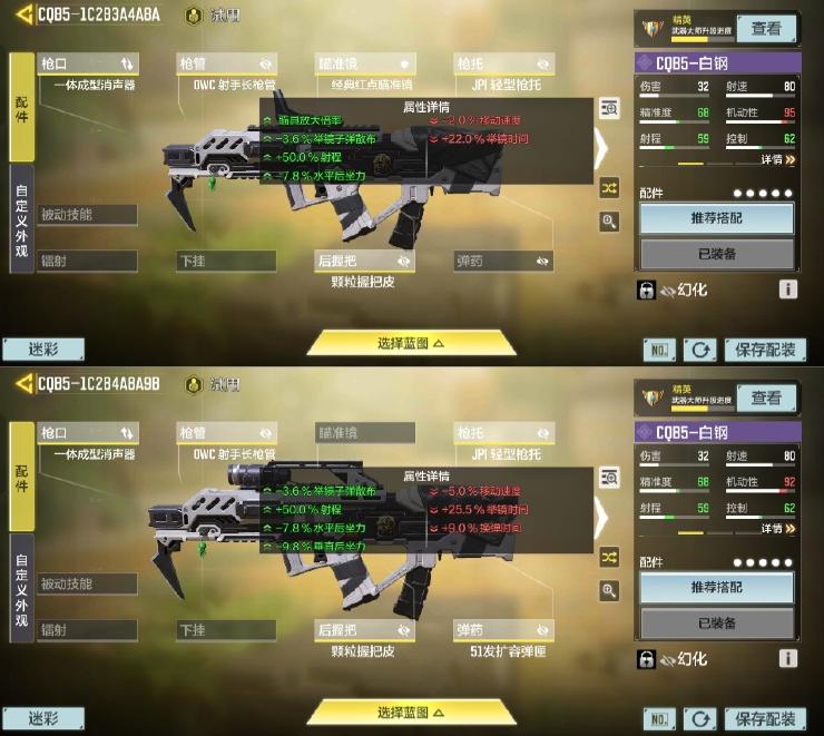 经过多次测试,老狼终于搭配出新版本最舒服的枪械配件: CQB5核心射程TTK选择一体成型消声器和OWC射手长枪管来将1段射程提升到13.5M,4枪稳定射程则达到了24M,中距也可以一战!续航则给到51发扩容弹匣提升续航能力!为了提高中距离作战优势提升,因此给到JPI轻型枪托滑板鞋,最后给到颗粒握把皮提高精准度就可以了。如果不喜欢机瞄的话也可以和老狼一样把弹药换成红点瞄准镜,打爆破也是完全可以的!