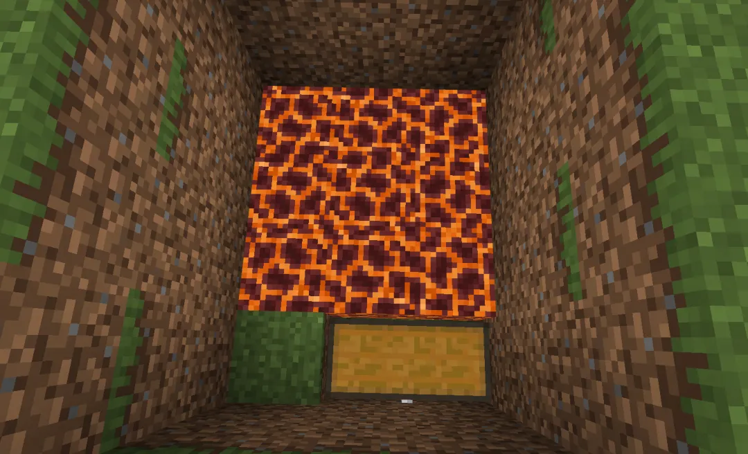 在最底部铺上岩浆块