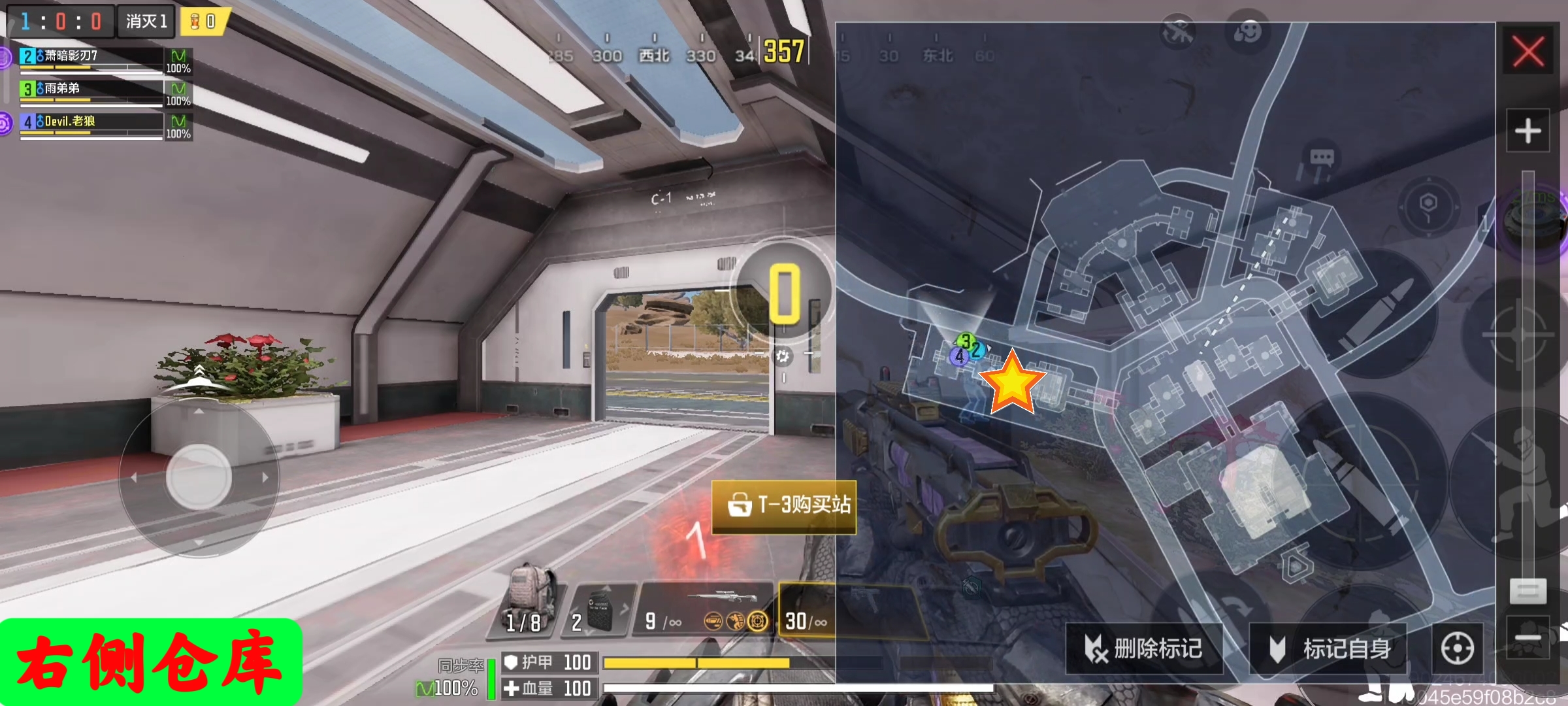 第三个出生点为:右侧仓库。这个出生点位置在地图的最外围。因此要面临跑毒的问题。在他的后方同样是右侧2层实验室,和左边结构相似,顶部不适合架狙。但他的前方有部分掩体,全部都是头皮位,可以直接架到左侧仓库和主控室方向。因此也非常适合起狙。面对主控制室,至上而下的火力压制,可以和上个出生点的人一样利用仓库过道上方的太阳能板作为掩体做出反制!