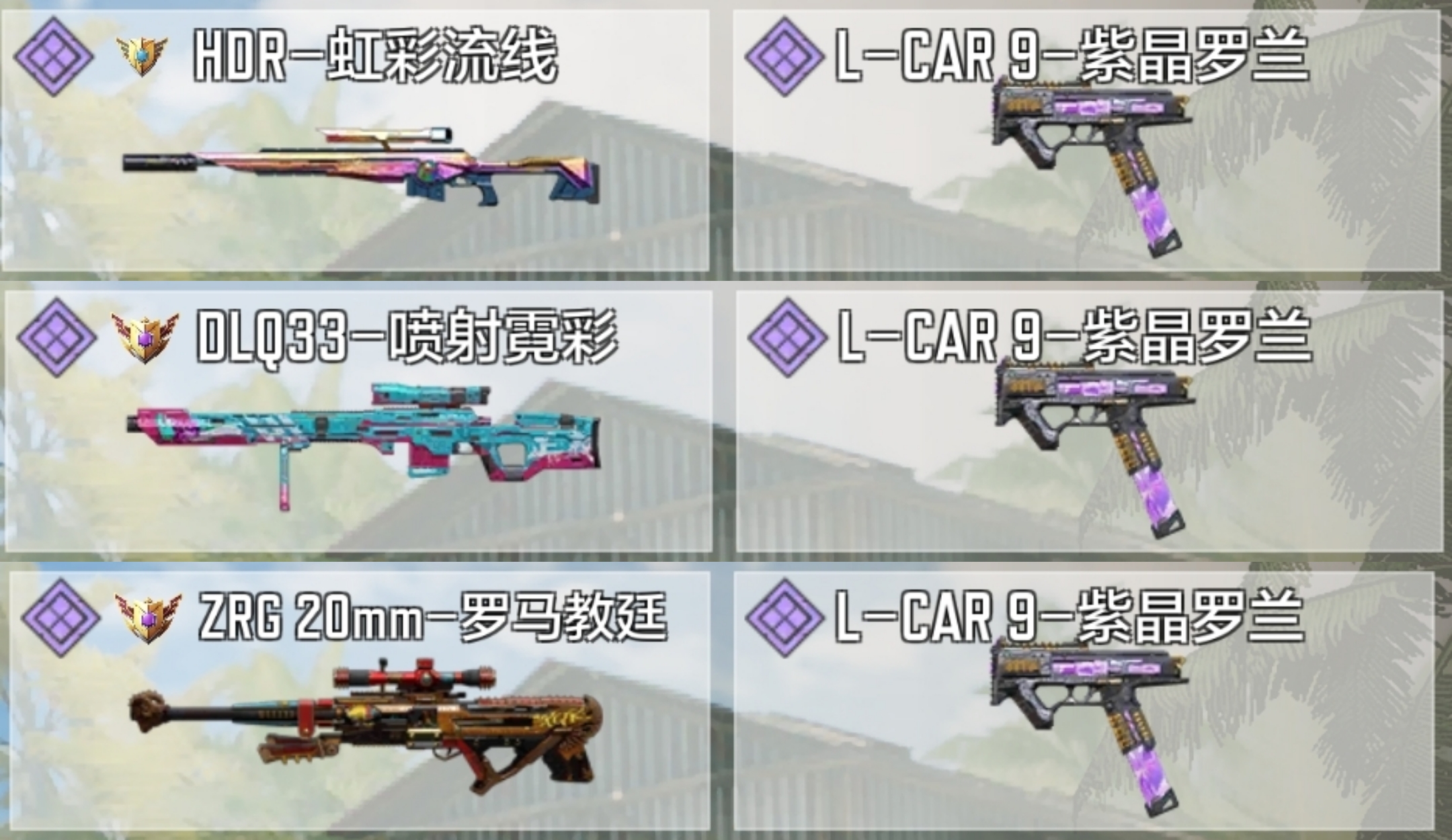 由于地图较大,掩体较多,所以不利于冲锋枪和连狙的发挥。而开局大多情况下是不会买紫色护甲板的,因此重狙是非常不错的选择,老狼这里建议使用:HDR、DLQ33和ZRG 20mm,在命中头部都可以做到一击必倒!