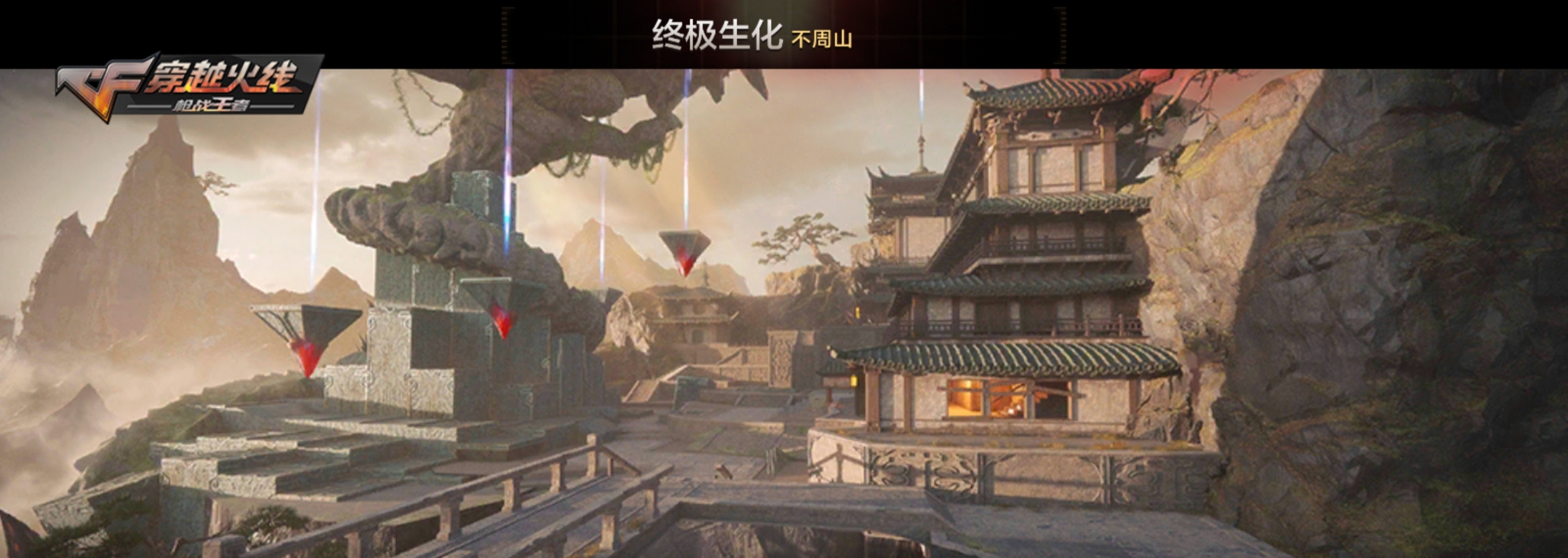 不周山地图属于中型生化地图,其中各种浮石、楼阁、山体、屋檐等建筑给了人类很大的操作空间,并且路径也是四通八达,更有可以直接弹跳的光柱以及可以上升下降的石板,因此是一张非常适合锻炼与幽灵周旋跑酷的生化地图。