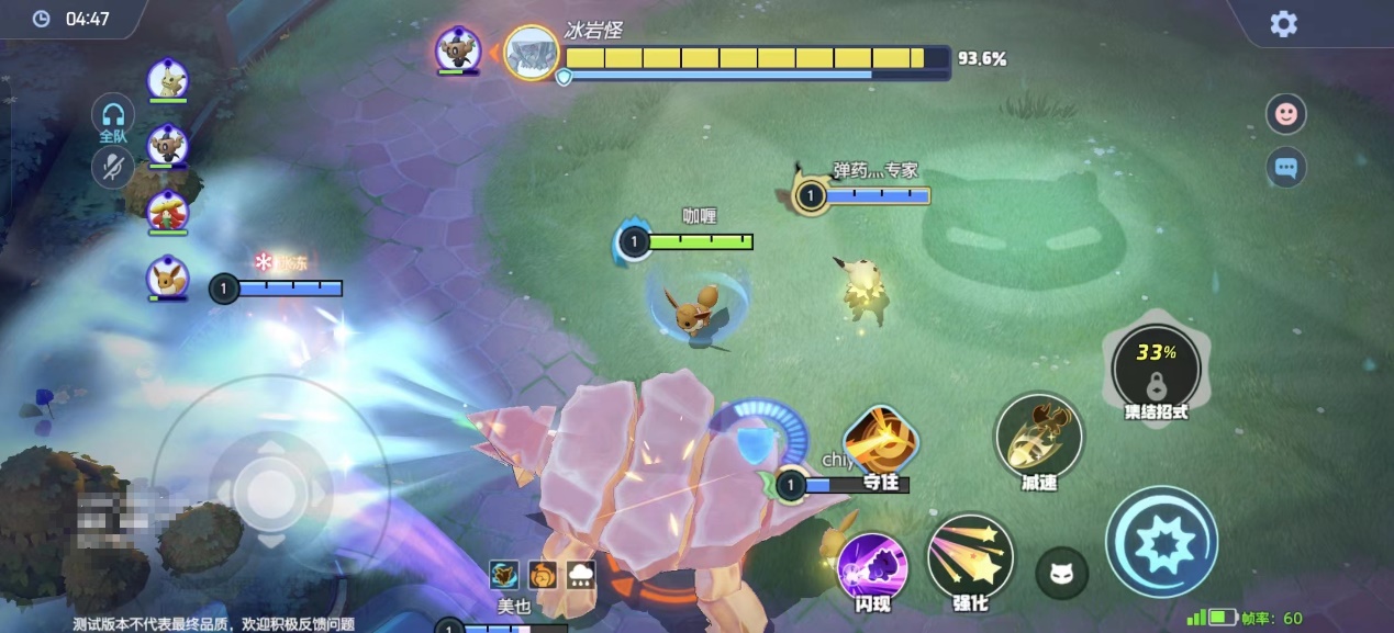 首先冰岩怪血量较高,有高额护盾和重装效果,技能范围中等,但是命中会被冰冻。需要训练家们及时躲避,避免多人被冰冻控制导致被击倒,从而造成时间不够出现挑战失败的情况发生。