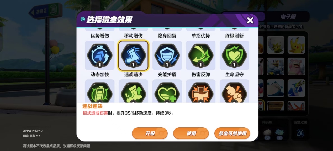 宝可梦徽章效果首选推荐速战速决和并肩加速还有专注治疗。