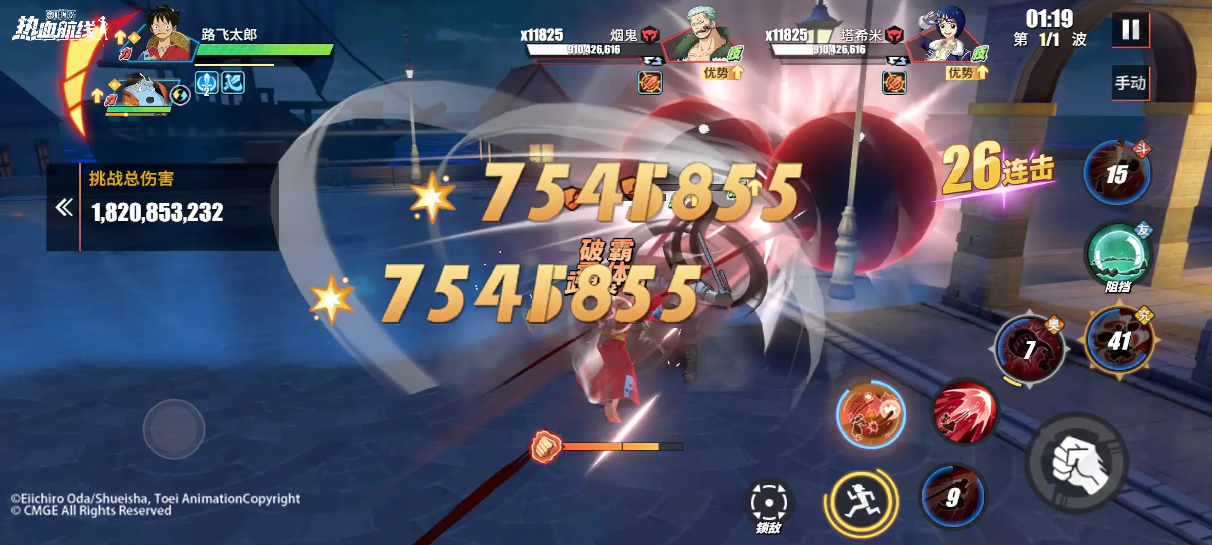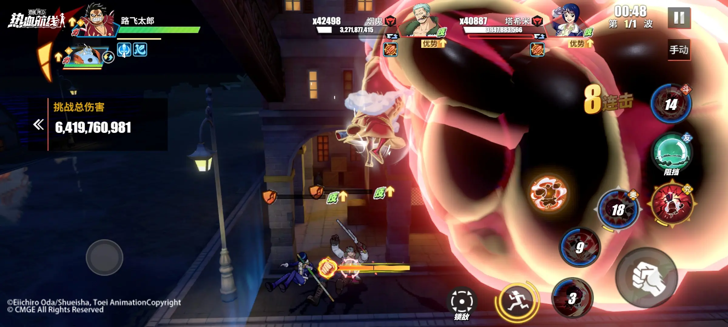 这里采用6星和之国·路飞和6星新世界甚平为大家带来高星和之国·路飞的连招分享。
