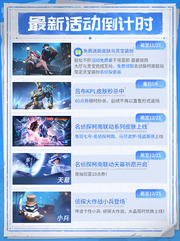 名侦探柯南联动系列皮肤【鲁班七号-名侦探柯南】、【马可波罗-怪盗基德】上线!