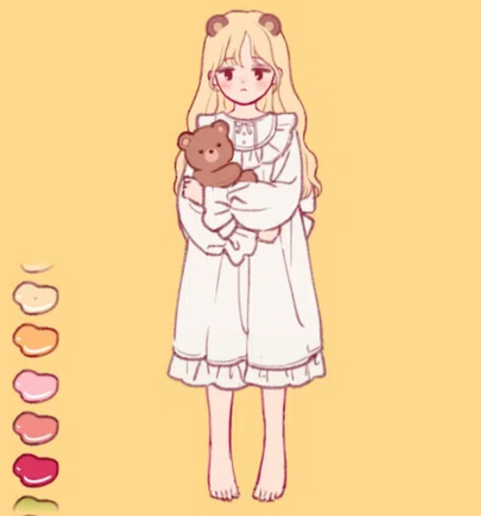 我们可以自由的给女孩穿上不同的服饰,搭配不同的装饰,还可以更改不同颜色的背景板以配合服饰~