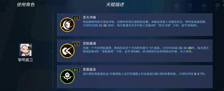 一技能(圣光冲锋):举盾格挡向前冲锋,距离比阻挡箱远一点,顶到目标位置会造成一次减速(基本动不了)