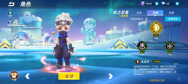 这是一个被动技能,主要内容是在使用主动技能中,三次可以使对手被施加寒冰印记,从而获得冰冻效果,被冻住不能动。这一点也可以更好的体现水之忍者角色控制和位移能力强的定位,但该技能在实战中其实很少受关注,主要是追捕会觉得恶心。