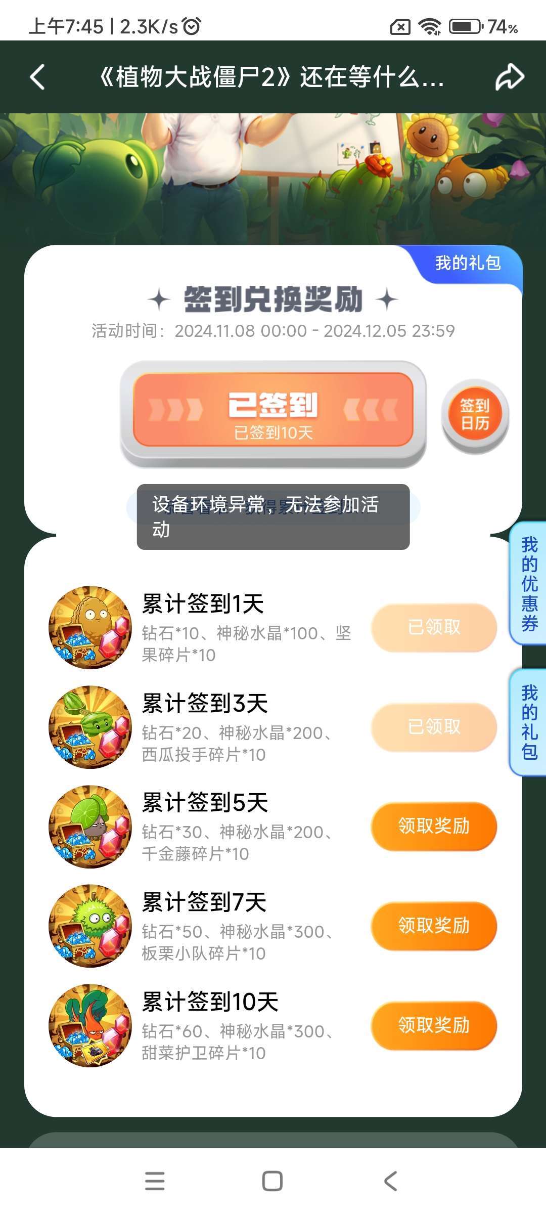 为什可以签到不能领奖励😭😭😭😭