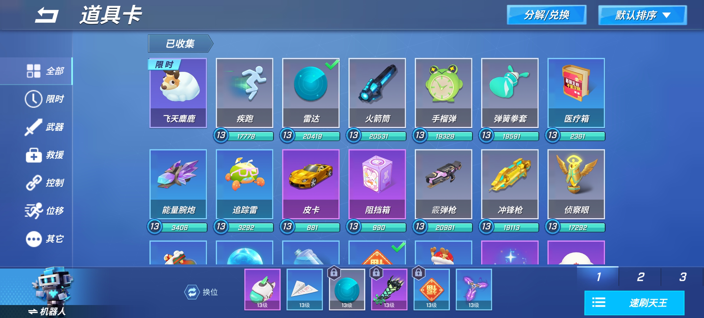小飞机:加速道具,比十三级车快还能跨越地形,所以是个速刷好东西,可以说要带的