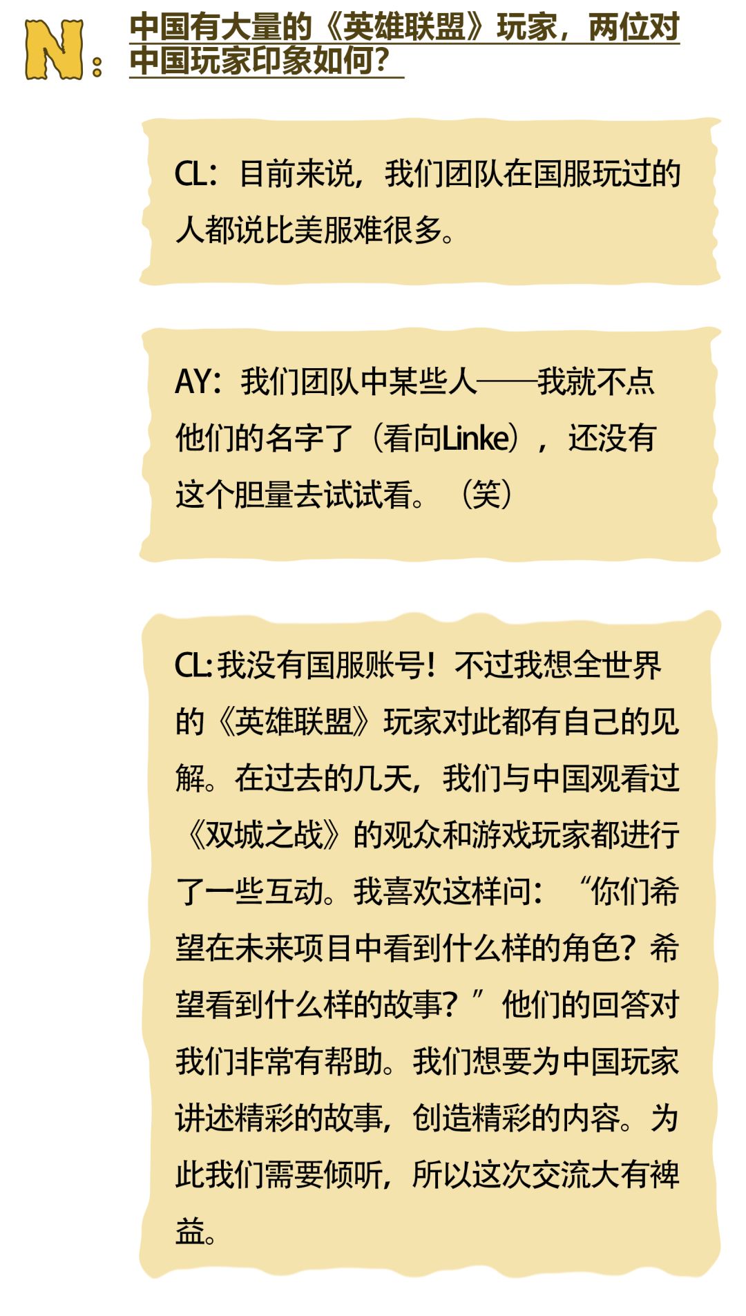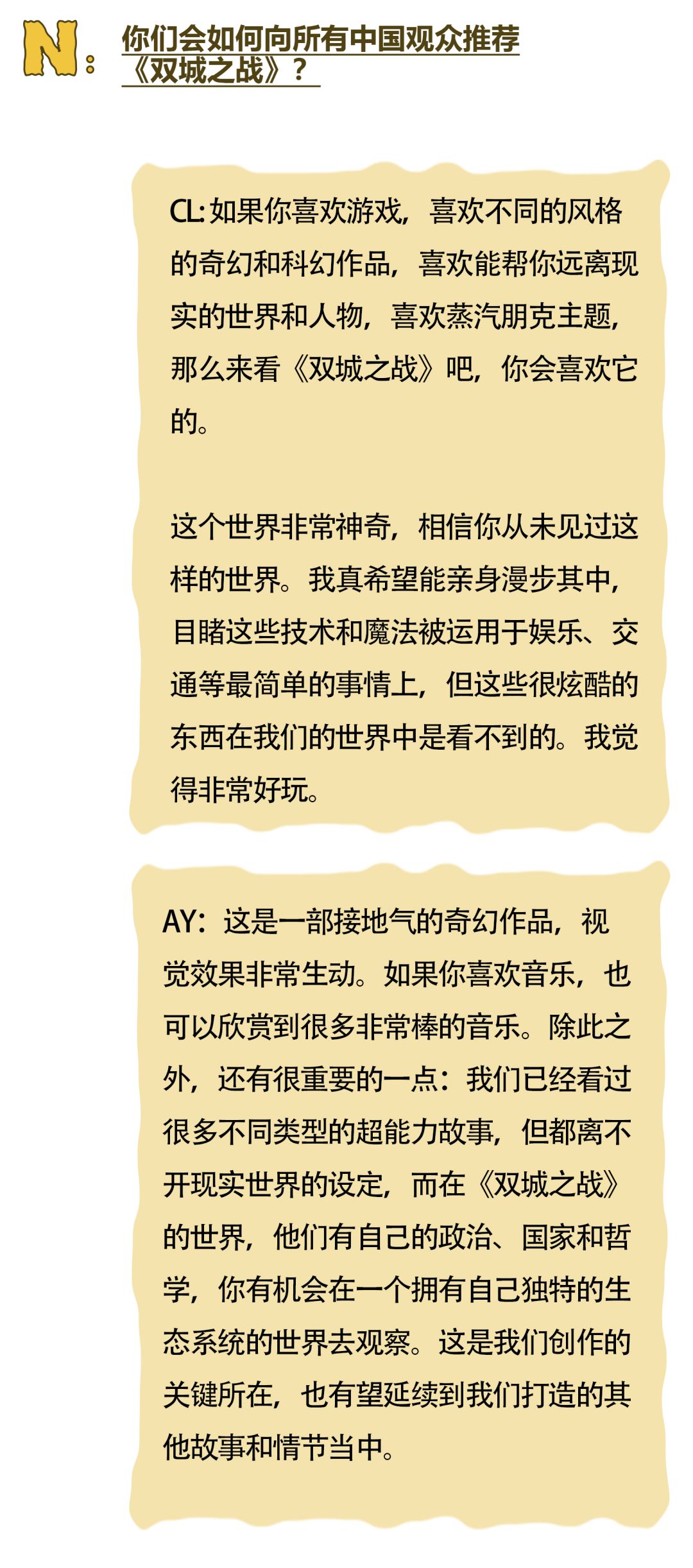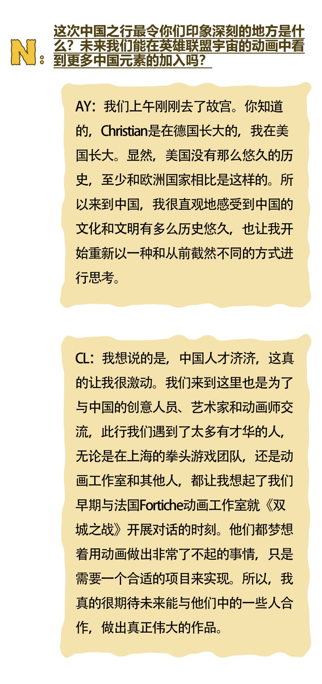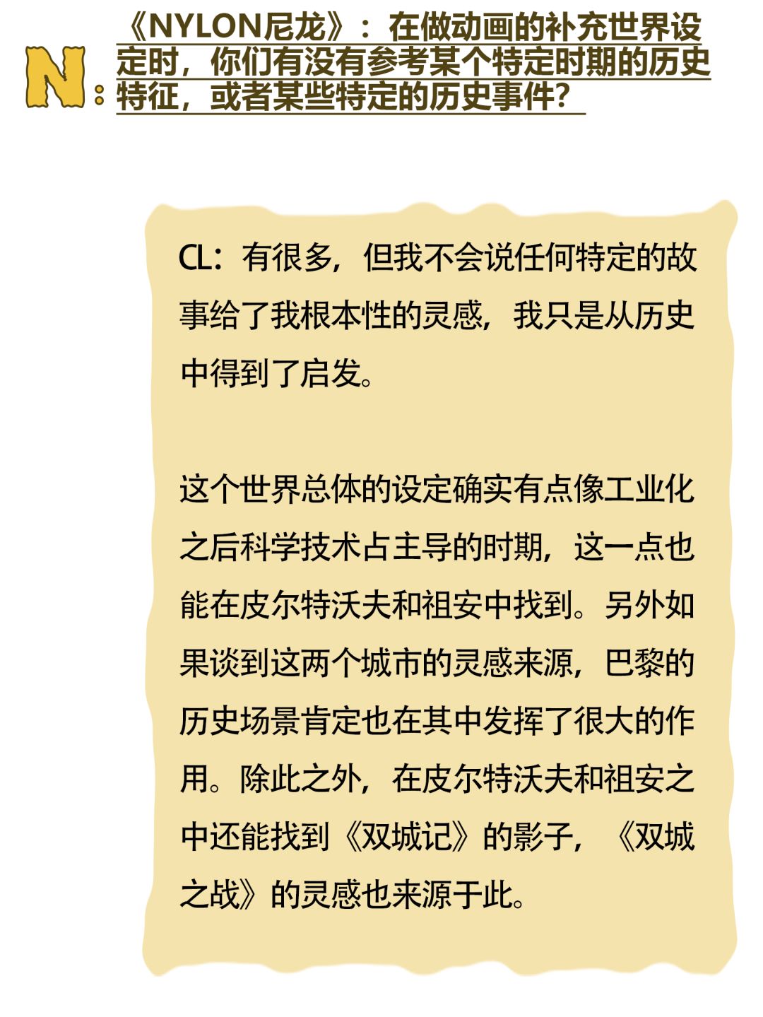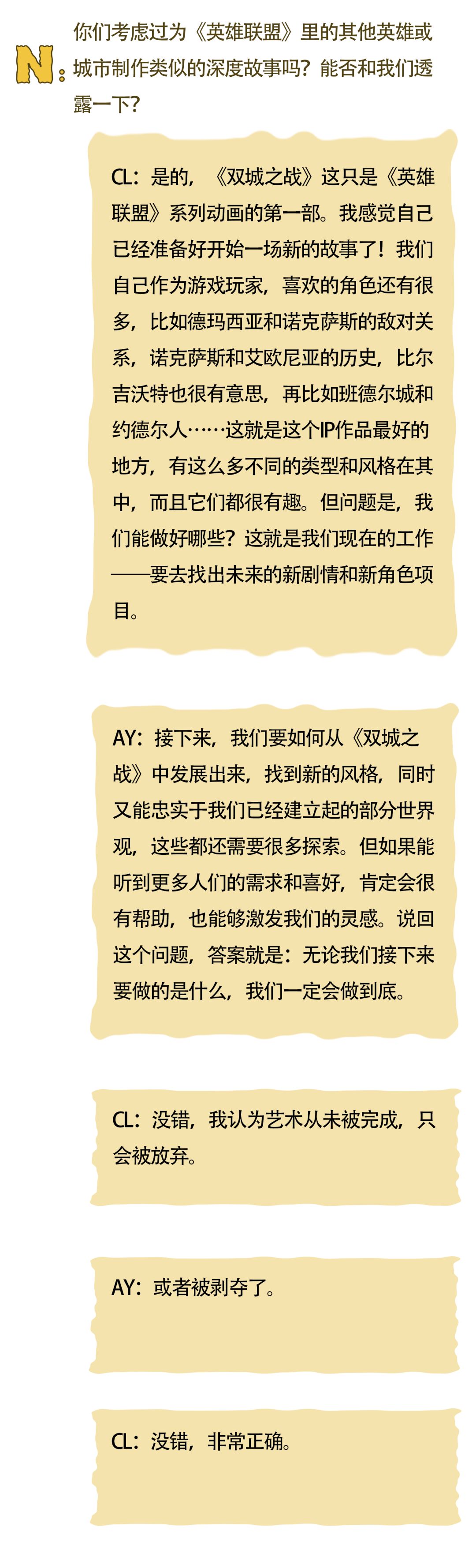 在《双城之战》第二季上映之际,动画的两位主创Christian Linke和Alex Yee也来到了中国,并接受了《NYLON尼龙》杂志的独家杂志专访。尼龙社团还邀请到了8位来自不同大学电竞社的同学们,在线与主创团队进行交流,探讨《双城之战》十年幕后的故事。