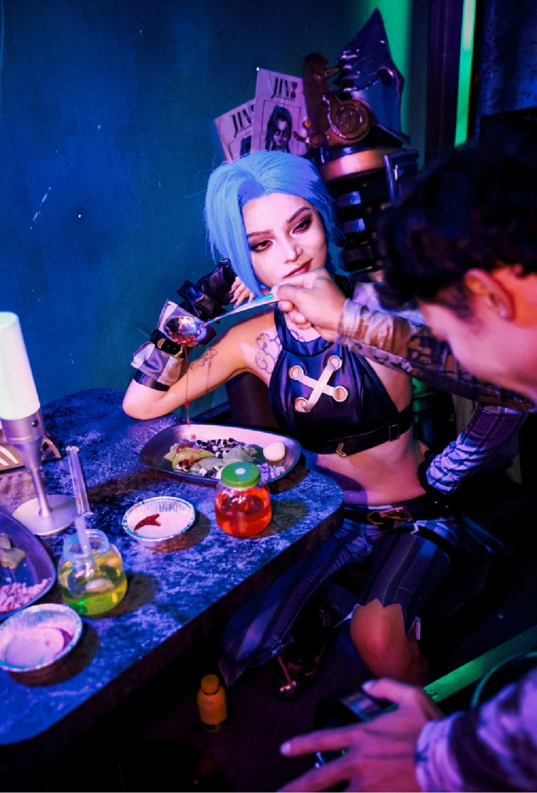 并且在这里,顾客们还可以获得一份看起来并不那么“精致”的祖安美食——但金克丝说它们其实味道好极了。配着摇滚和拳击表演佐餐,别有一番风味。