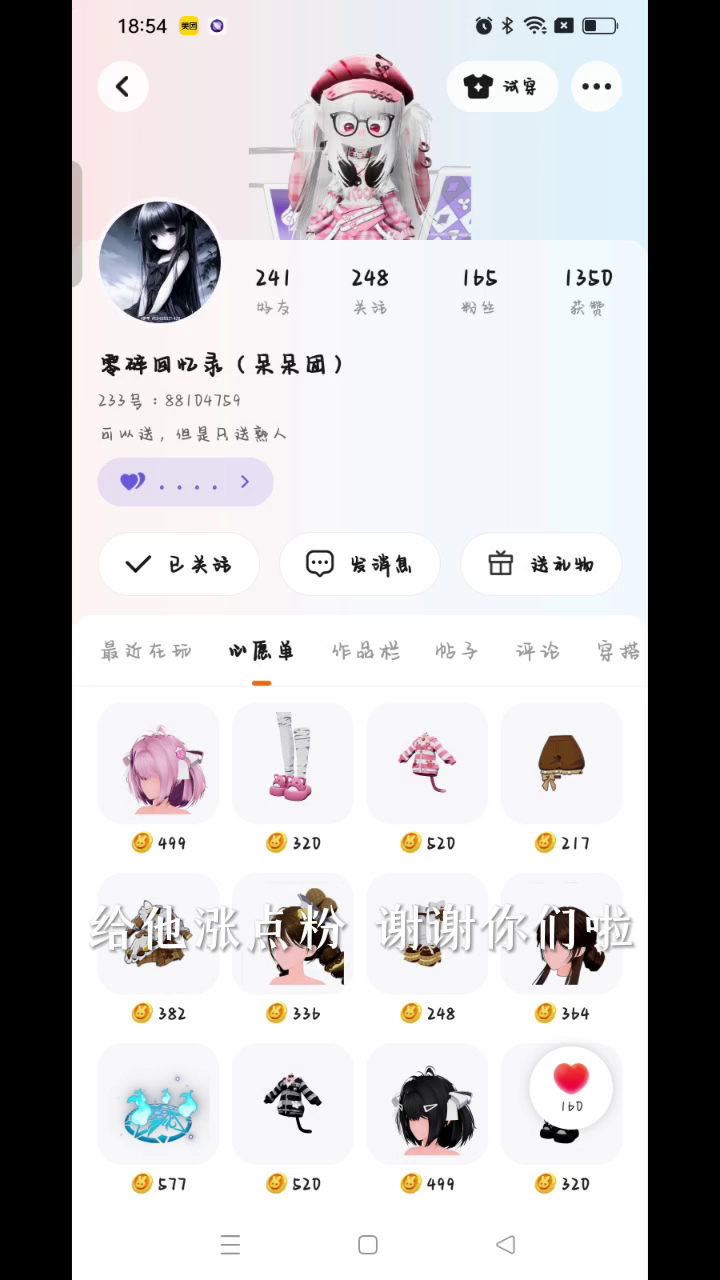 帮她涨粉 她会给你送礼哦