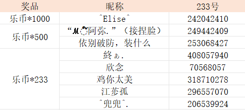 随机抽取1名,送出【乐币*1000】;