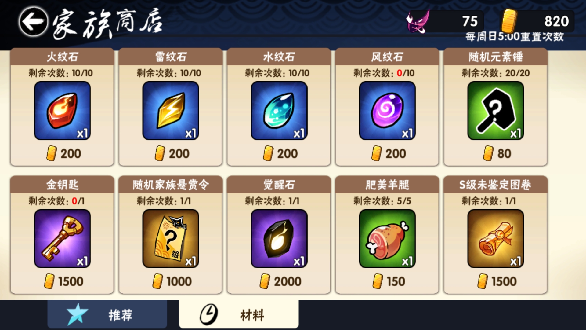 雷纹石推荐在家族商店(最多10个),商城每周忍者养成(最多21个),3V3商店(最多30个)等地方获得,也可以通过一些限时活动获取,如完成限时活动不仅可以获得纹石还可以在活动商店兑换纹石(最多10个)