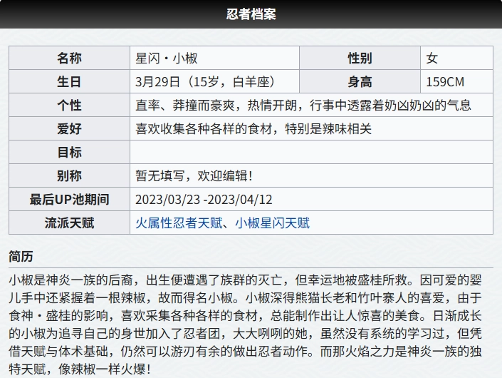 忍者档案|星闪·小椒