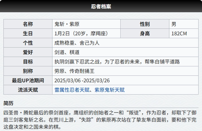 忍者档案|鬼斩·紫原
