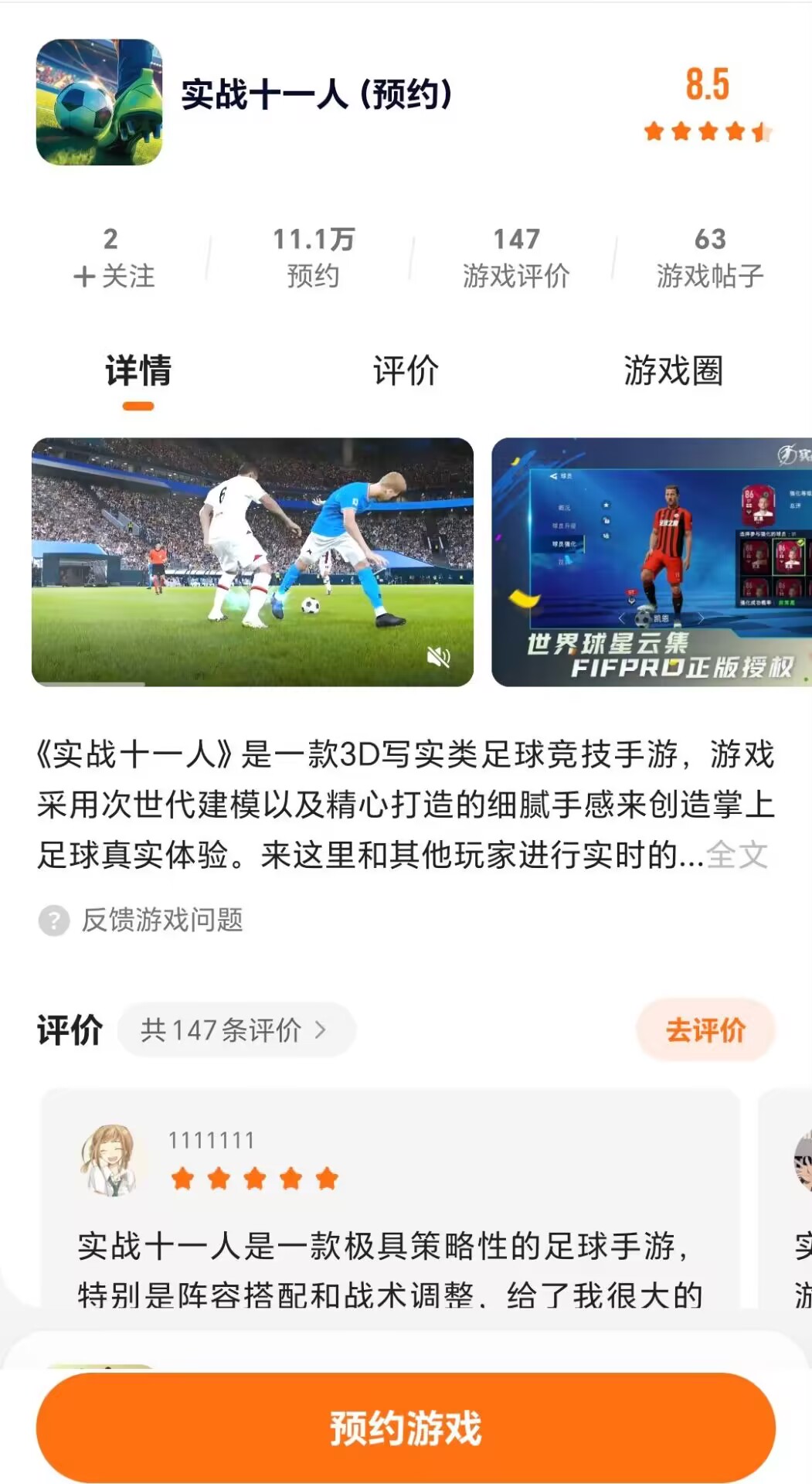 ①成功预约《实战十一人》;