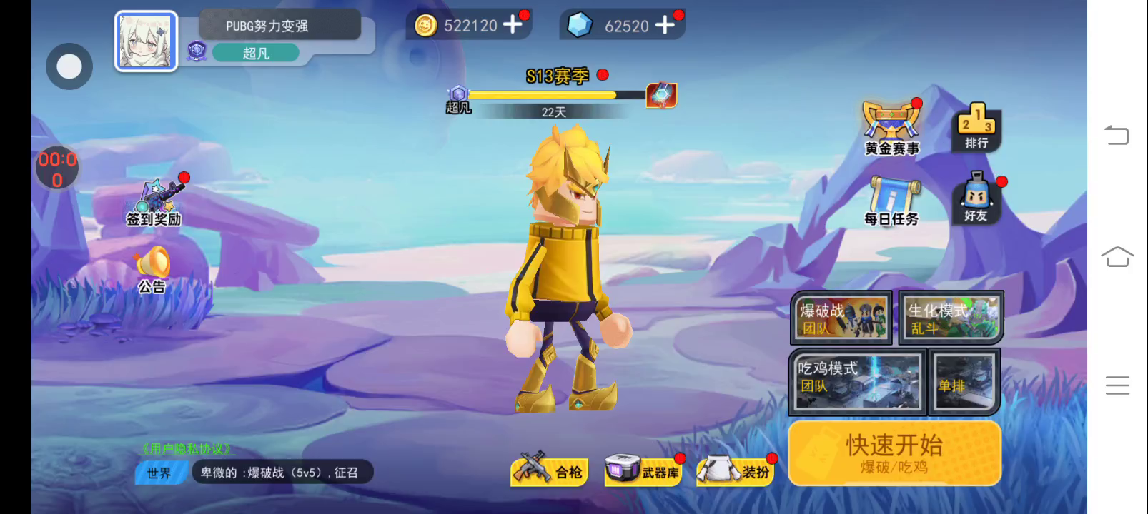退游了,s20在玩吧,拜拜拉罐,我去玩和平了,梦纸你随便玩儿玩儿吧不要把我钻石花就行,金币你随便花。