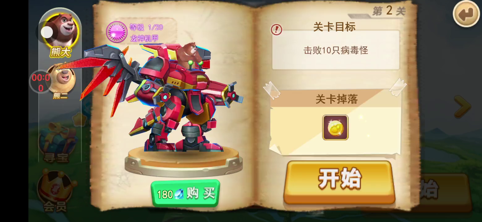 机甲变形,颠覆想象 游戏首创机甲变形系统,初代机甲、金刚机甲、龙神机甲、爆裂机甲四大机甲震撼登场。每个机甲的设计都别树一帜,将机甲动作和熊出没角色完美结合,变形中的每个动作都清晰无比,让你感受到机甲的无穷魅力。 双线作战,极限操作 游戏摒弃了传统的冒险射击方式,别出心裁的采用了合体闯关系统,陆空双线全屏作战让你秀出操作极限,让你热血沸腾激情燃爆。环环相扣的关卡设定、紧张刺激的飞行空战,极具难度的boss挑战,必定让你体验到前所未有的机甲格斗快感!