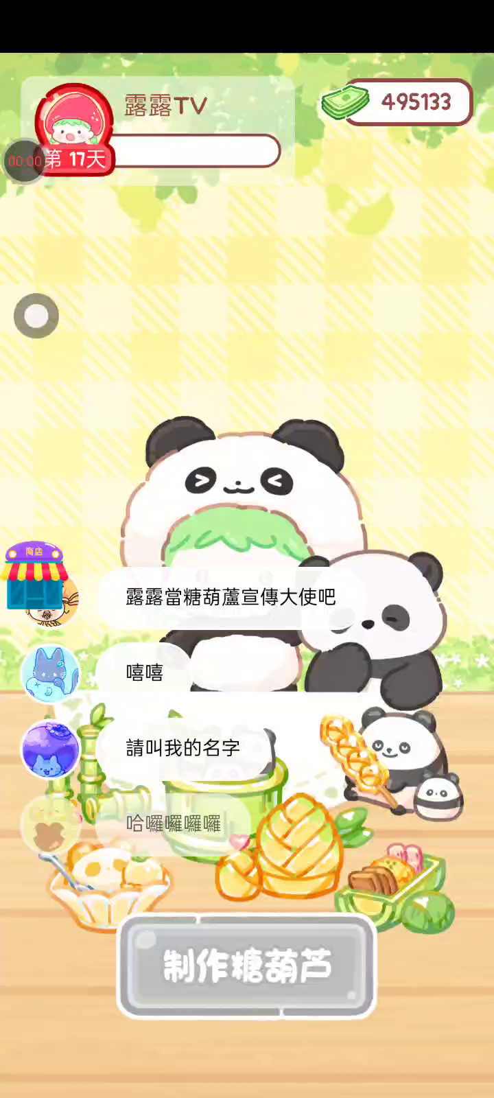 更新新的装饰和圣诞糖葫芦!! 「你进行草莓糖葫芦吃播的话,我就赞助100元。」 「脆口的声音太迷人了(°θ°)」 由于客人都被最近新开的许多糖葫芦店家抢走,曾经号称糖葫芦达人的父母因此卧病在床。 继承父母店面的主角露露开始糖葫芦吃播来宣传店面。 直到成为真正的糖葫芦达人那一天! 「今天我也要开始糖葫芦直播罗!( •o• )」 [串材料] 只有新鲜的水果的话,很难以一名吃播实况主存活下来。还要有松饼、地球软糖、青阳辣椒!利用奇特的材料制作糖葫芦吧。 [裹糖衣] 将材料串满竹签的话,就放进锅子搅动吧。唯有利用达人的秘法,才能裹出又薄又脆的糖衣。 [即时吃播] 咔哒咔哒!今天的吃播也大成功。热烈的聊天内容看起来反应也不错。看来得利用完成观众任务得到的赞助金来买新材料了! 来,准备好了吧?现在就马上挑战成为糖葫芦达人吧!