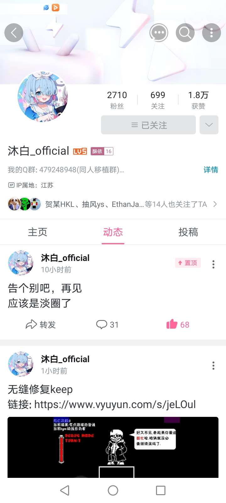 福利是B站搜这个人他移植了很多同人沐白official
