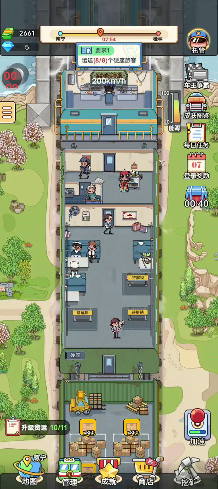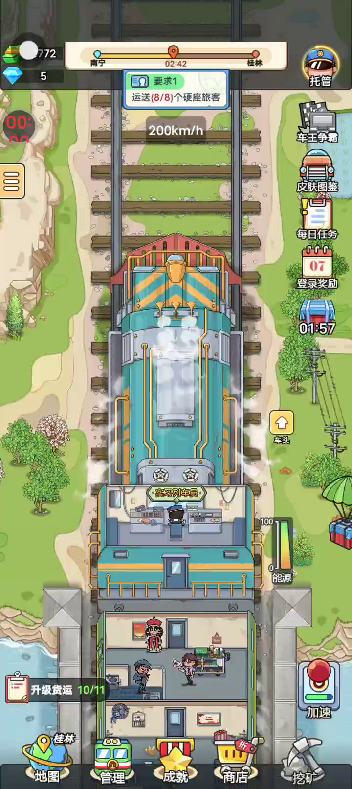 1.轻松活泼接地气 从乘客到车厢都还原真实生活。 怀旧感满满,带你回到那段令人怀念的岁月。 2.自由拼装不受限 卧铺餐车头等座,各类车厢应有尽有。 根据喜好组装车厢,每次旅程都有新体验。 3.市场交易赚差价 市场货品极具特色,各地方特产琳琅满目。 物价有涨有跌,抓住机会低买高卖,赚取大额差价。 4.放置挖矿收益多 边开火车边挖煤矿,获得双份收益。 雇佣打工人,效率无限提升。
