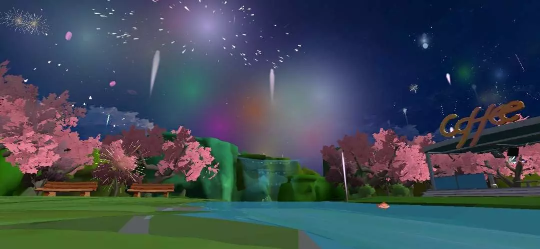 ✨地图的风格是偏古风韵味的,旁边的樱花树🌸还有飘散是花瓣真的很唯美,清澈的小溪上架这一座拱形桥可以和好朋友站在上面一起打卡,在空中绽放的炫彩夺目的烟花做的很逼真,格外的好看,还可以和好朋友一起来玩这个“烟花岛”,超级适合跨年、情人节等节日时来游玩,和好朋友一起在小溪旁边的亭子里赏烟花,一起聊天,一起打卡拍照📸想想就很浪漫