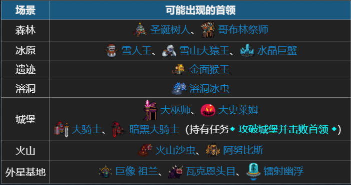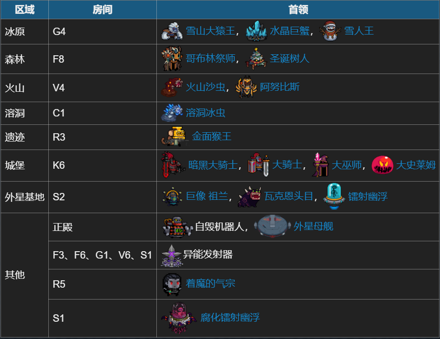 以下为首领据点中首领的种类: