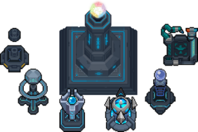 增幅矩阵,护盾塔,空军基地,生化装置,充能装置,飓风装置,激光塔,机枪塔,维修中心,尖刺陷阱,天气控制仪