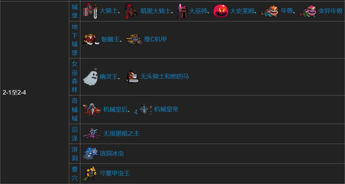 进入第二大关后,每一小关都有50%的概率生成隐藏关卡场景及对应首领( 守墓甲虫王、 溶洞冰虫、 无垠黑暗之主)。