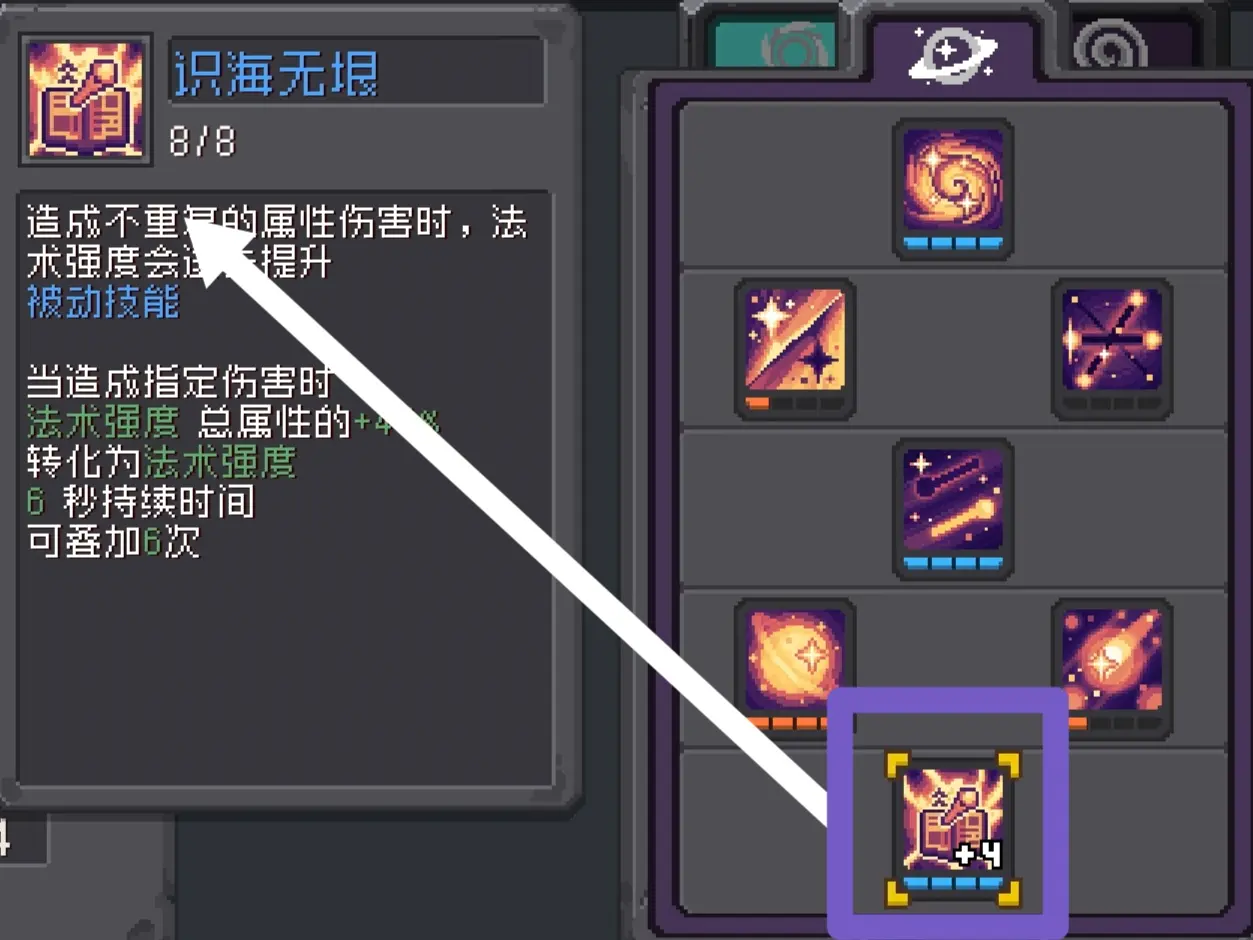最重要的技能之一提升属性伤害的前提还能加蓝量消耗让[潜能释放][暗夜无终]吃满