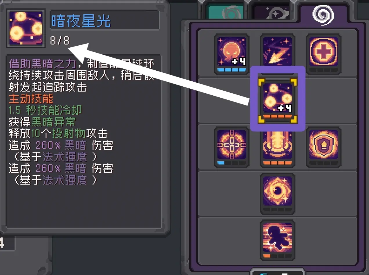 3级降低[暗夜星光]弹幕速度和贴身射击相辅相成