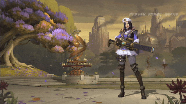 地面刻印的齿轮光圈转动,凯特琳高举左手,拿出海克斯水晶,为战斗做最后的准备。子弹入膛,蓝色漩涡中,凯特琳向空中射出一枪,似乎在警示着叛乱者,随后前往目的地执行正义。