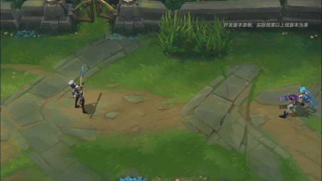 凯特琳屏气凝神,瞄准敌人时,目标上方会出现蓝青色瞄准镜标记,脚下浮现蓝色机械齿轮,激光瞄准镜放射出蓝色渐变光线。致命一击发射!命中敌人后,产生爆炸,造成伤害。