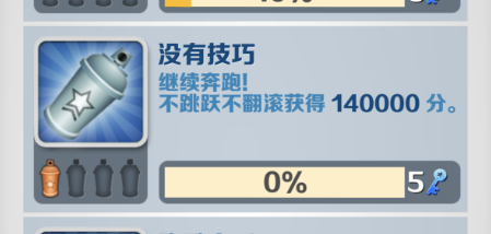 首先大家先来和老咸鱼看看这个没有技巧的【没有技巧】成就究竟要怎么完成。先看看这个成就的描述,官方给到的描述是:继续奔跑!不跳跃不翻滚获得14万分(最高铂金杯的需求分数是50W分,下文中会以50W分当做范例进行讲解)。