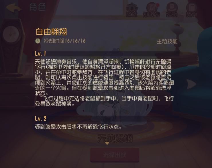 天使汤姆的技能加点方式有些乱 先点武器和主动 然后2级武器 之后一般点被动 如果遇到老鼠围攻拦截就先点2级主动 之后点出2级被动 后面就根据实战状况调整了 没问题就点3级被动 遇到打架队就优先3级武器 如果老鼠拉扯就先3级主动即可